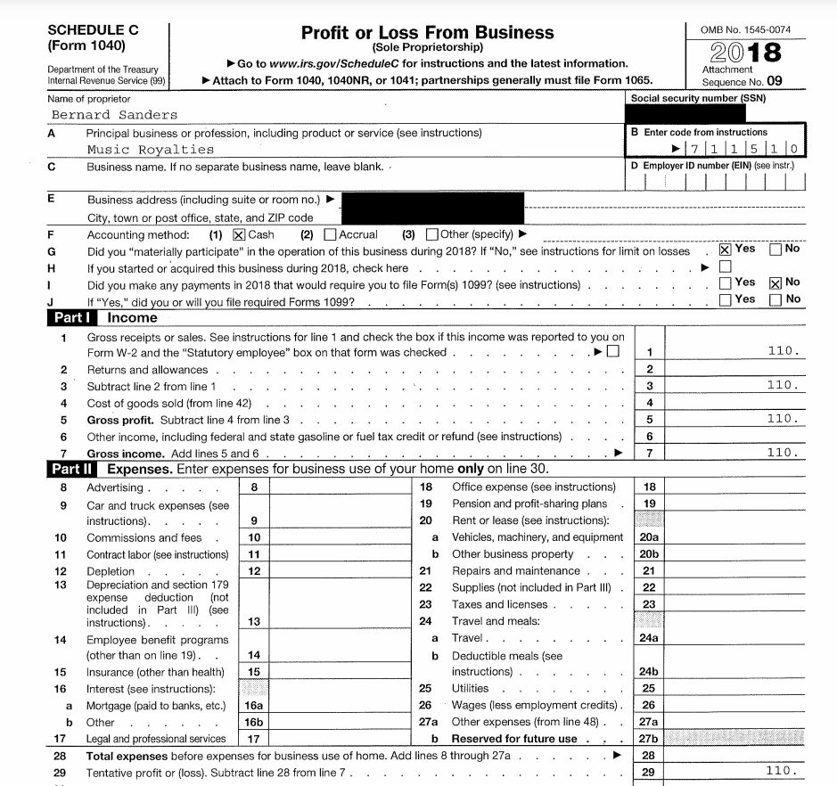 : I want to know more about the $110 Bernie made on "Music Royalties" last year