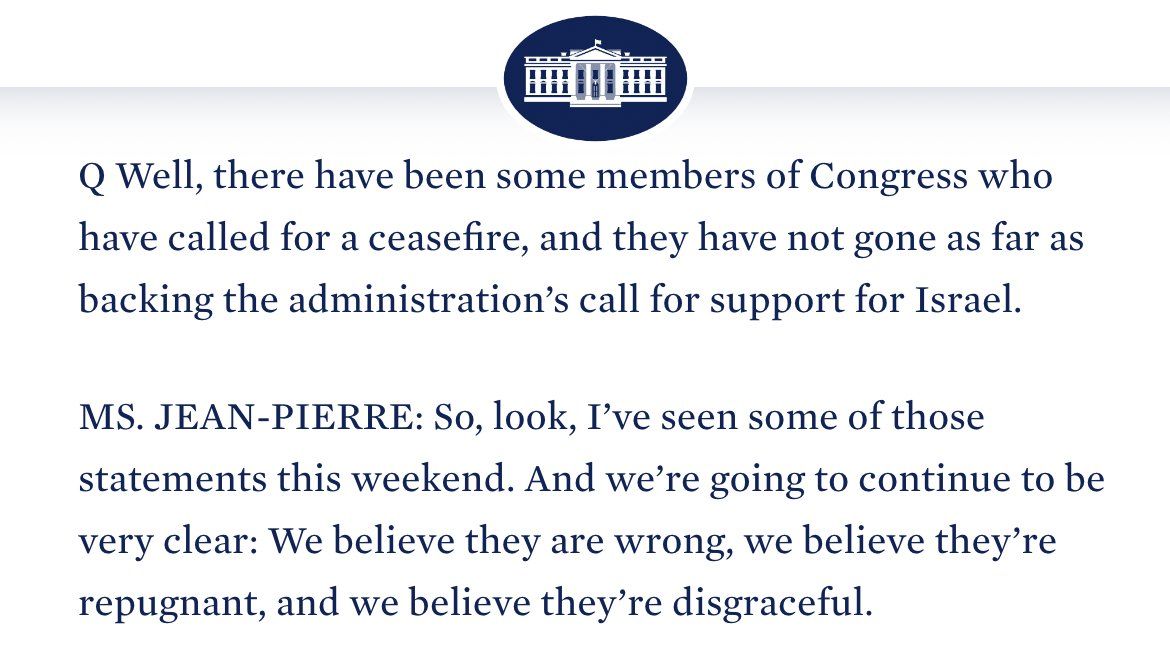 : White House spokesperson on calls for a ceasefire: “They’re repugnant”